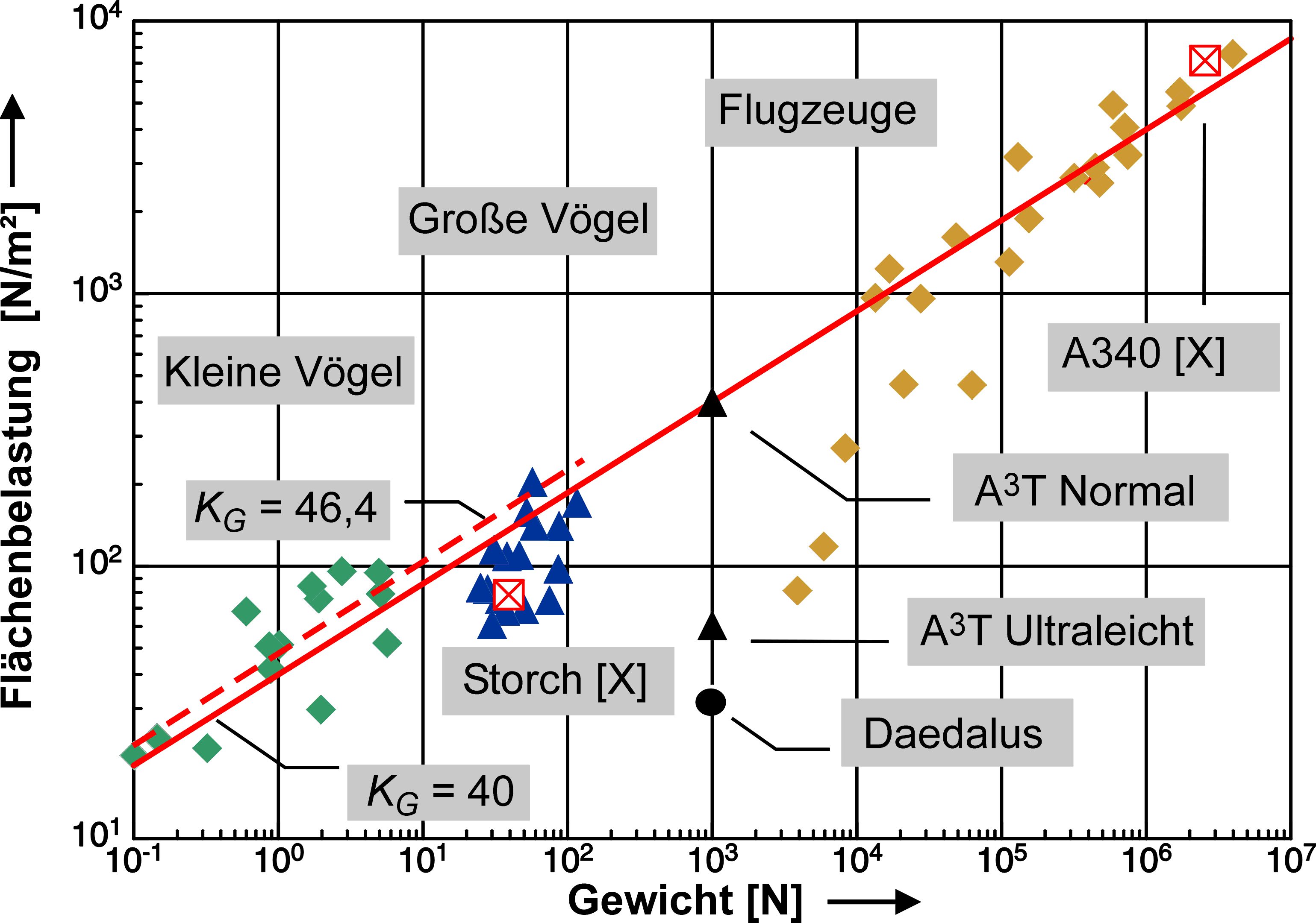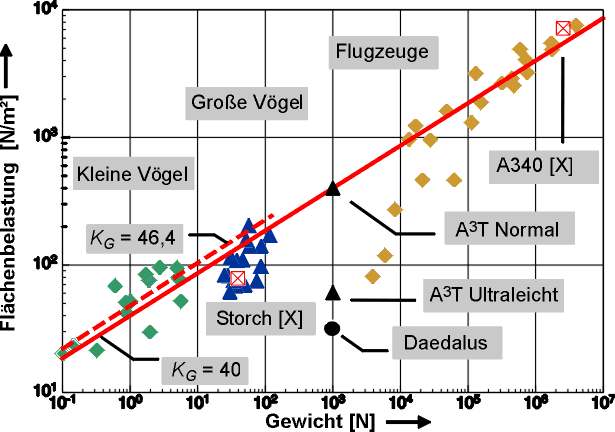 über dem Gewicht des Fliegers aufträgt. Die verschiedenen