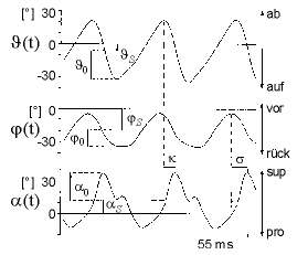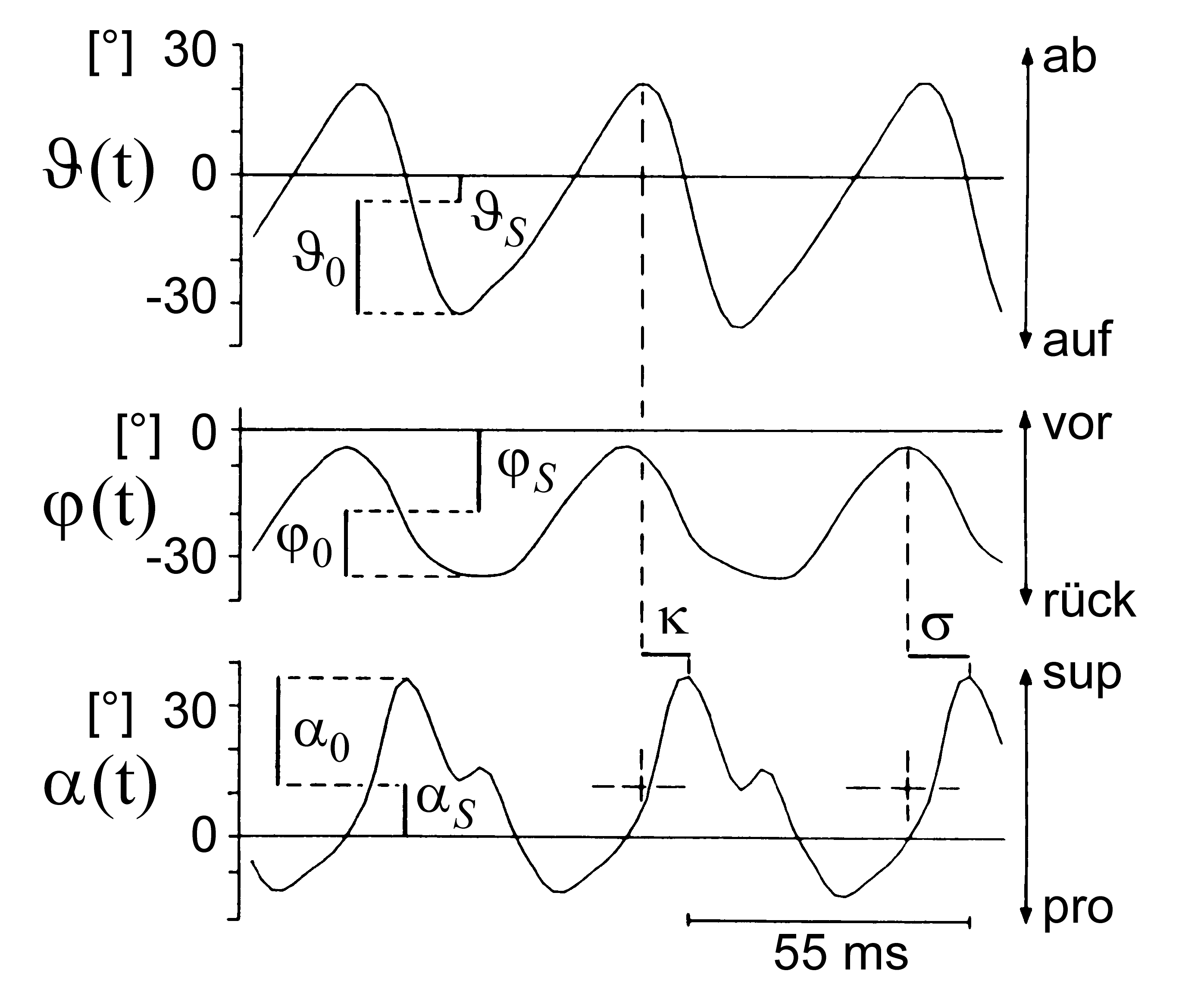 harmonischen Schwingung der drei Bewegungsanteile: Drei stationäre